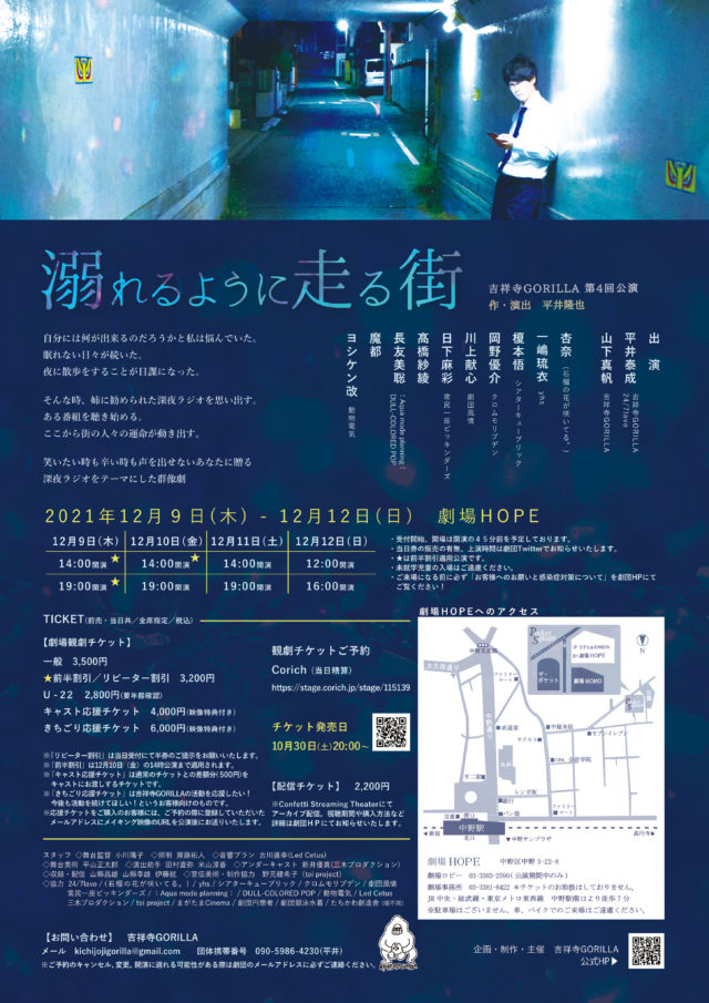 平井泰成(吉祥寺GORILLA/24/7lavo) / 山下真帆(吉祥寺GORILLA) / 杏奈((石榴の花が咲いてる。)) / 一嶋琉衣(yhs) / 榎本悟(シアターキューブリック) / 岡野優介(クロムモリブデン) / 川上献心(劇団風情) / 日下麻彩(常民一座ビッキンダーズ) / 髙橋紗綾 / 長友美聡(:Aqua mode planning:/DULL-COLORED POP) / 魔都 / ヨシケン改(動物電気)